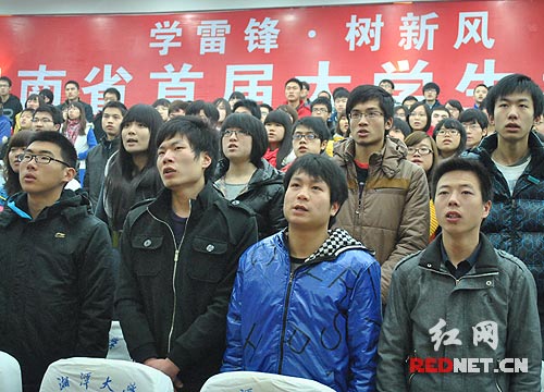 大学生志愿者代表共同朗诵《弟子规》选段 红网长沙3月7日讯(记者 刘怡斌)今天上午,湖南省首届大学生孝文化节“学雷锋·树新风,怀孝心·践孝行”大学生主题教育实践活动在湘潭大学启动。来自全省近100所高校的大学生志愿者代表用独特的方式诠释了“孝”的内涵,表达了大家深入学习雷锋精神,大力弘扬中华传统孝文化的坚强决心。本届孝文化节分为四个阶段,为期一年。期间,将在湖南省内高校开展摄影、DV、书画、孝心故事、孝行创意等主题作品征集,孝心班级、孝行团队、孝行社区创建,孝心班级和孝行团队创建,孝行学子和孝心志愿者评选,关爱空巢老人社会实践志愿服务活动和人口老龄化问题的社会调查,以及孝文化博览会、孝文化大本营开营仪式等丰富多采的活动。同时,组委会还将结合活动开展的情况,组织专家开展百佳孝心志愿者、百佳孝心班级、百佳孝心摄影作品、百佳孝心书画作品、百佳孝心故事以及十佳孝行团队、十佳孝行学子、十佳孝行DV、十佳孝行创意作品、十佳孝行调查报告等系列评选活动。 此次活动由中国老龄事业发展基金会、湖南省精神文明建设指导委员会办公室、中共湖南省委教育工作委员会、湖南省老龄工作委员会办公室、共青团湖南省委员会、湘潭大学等单位和部门联合举办。湖南省志愿者服务基金会还在湘潭大学设立了百善慈爱专项基金,旨在长期并推动孝文化的研究、传播及大学生的孝行实践活动。 启动仪式上,湘潭大学党委书记肖国安表示,中华孝道文化源远流长,孝老爱亲传统美德历久弥新,作为中华文化重要组成部分的孝文化和雷锋精神,更是值得我们永久传承的中华文化精髓。在切实加强大学生思道德建设实践中,本次大学生孝文化节的全面启动,既为广大青年学子结合新的时代精神加强学习班和自学践行孝文化、提高思想道德素质搭建了一个新的载体,也为深入研究并广泛传播孝文化、引领社会道德风尚拓展了一个新的平台。 |