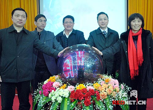 主办单位代表共同按动启动球,启动湖南省首届大学生孝文化节,开启官网《中华孝行网》,揭晓官方刊物《回眸》。