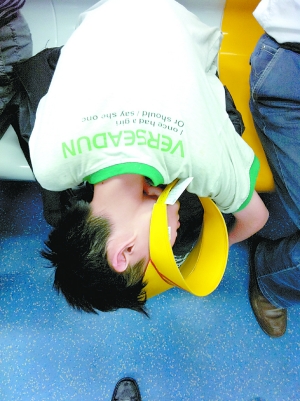 一个在地铁车厢内怀抱书包,以高难度姿势鼾睡的“瞌睡娃”在微博里引起众多网友的关注。网友惊呼:怎么把孩子累成这样了?快给孩子减负吧。 据博主介绍,前天下午5时许,在地铁5号线东单站,他无意中发现了一个举止奇怪的小男孩。“座位上有个很瘦弱的小学生探身猫腰,开始还以为他系鞋带呢”。再细看,那孩子把头深深埋在两腿中间,两条细小的胳膊自然下垂随着车身晃动,安全帽斜挂在下巴上,原来孩子睡着了!这孩子怎么困成这样?看着令人心酸,于是博主就用手机拍下了这一场景。 车到磁器口,“瞌睡娃”猛然直起身,睁开蒙眬的双眼,迷迷糊糊抱着黑色的大书包要下车,但看看外面的站牌,又坐下了,靠着车厢继续睡。他旁边有个空位,但周围的几个大人谁都没坐,把座位留给了另一个背着大书包的小男孩。 靠着硬硬的车身,瘦弱的“瞌睡娃”显然并不舒服,但他就那样皱着眉头抱着大书包昏昏睡去,脸上还挂着刚才趴在书包上留下的硌痕。 “瞌睡娃”的照片在微博里被迅速转发、关注。“我女儿的书包我都拎不动!”“请减轻孩子负担吧,每天这样读书太累了!”多位网友在心疼孩子同时,也对目前的教育状况表示忧虑。网友爱米说:“咱们跟国外正好相反,该玩的年龄学,该学的时候在玩”。网友俞艾嘉说:“不要让孩子从小就直不起腰来。教育问题需要改进啊!”网友味蕾花开则正处在煎熬之中:“孩子正满眼清澈无邪地期待着一年级的到来,而我也只好抱着壮士一去不复返的心态并肩作战了。” (记者郭强) |