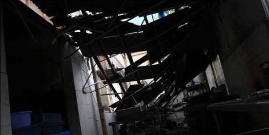 (湖南大学北校区一间食堂旁边加盖的简易厨房发生坍塌。图/记者 刘有志) 本报5月23日讯(记者 黎棠)22日下午3时左右,湖南大学北校区一间食堂旁边加盖的简易厨房发生坍塌,掉下来的砖正好砸在一名正在工作的工作人员头上。经120医生诊断,这名 中年妇女当场死亡。110民警和学校负责人随后赶来处理此事,倒塌的房屋已被封锁。 出事地点是位于湖南大学望麓桥学生公寓里的食堂。记者赶到现场时,出事厨房已被封锁。记者爬到食堂的2楼,从窗户望下看去,紧挨着厨房一楼,有一间长约10米、盖着石棉瓦的简易房间,屋顶的左半部分坍塌,石棉瓦碎成一块一块的掉落下去。 据一名保安介绍,他是第一个冲进坍塌的房子救人的。“当时没什么征兆,房子突然就塌了。”他说,厨房里有人在做菜,其他几个跑了出来,只剩下这 名中年妇女。“因为害怕房顶继续往下掉,我也不敢太往里面冲。”他说自己进去时,看到一块砖头正好砸在妇女的头上,还有一些砖砸在了她的腿上,他赶紧拨打 了110和120。然而,当120赶到现场时,“医生翻开她的眼皮看了看,测了下心跳和脉搏,就说没希望了。” 食堂的工作人员说,这间厨房已使用了几年。透过门缝,记者能看到里面有架子、洗菜栏、菜刀等物品。“应该是这几天下雨,所以屋顶才塌了下去。”一名工作人员说。 |