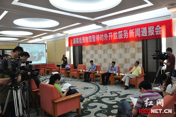 (湖南省博物馆举行新闻通报会,将于6月18日起暂停对外开放服务,直至2015年底新馆改扩建成,暂停开放时间预计3年。)