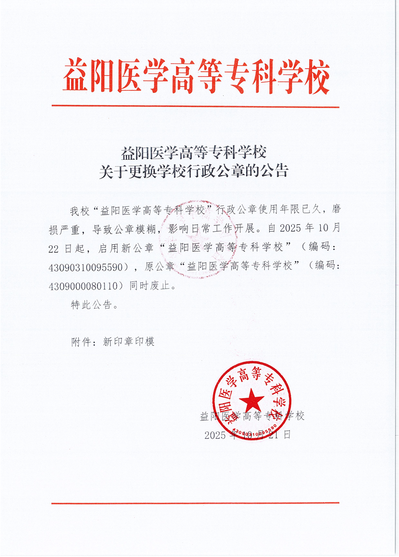 益阳医学高等专科学校关于更换学校行政公章的公告
