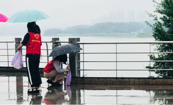 天空虽然一直下着小雨,但志愿者们不畏风雨,坚守阵地,积极维护交通秩序,散发创文宣传资料,劝导行人不闯红灯不乱扔垃圾,搀扶老人小孩过马路,引导乘客主动为老弱病残让座……志愿者们的行为得到了广大市民的称赞。