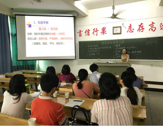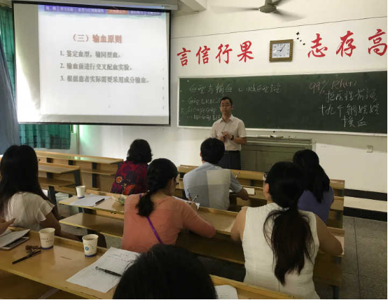 为了选拔优秀教师参加湖南省职业院校教师职业能力比赛, 6月24日,基础医学部(检验系)在1101教室举办2018年教学比赛。