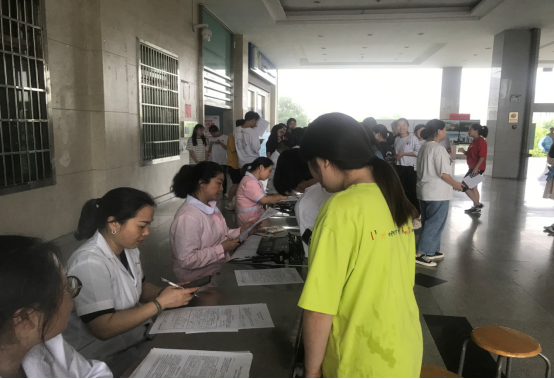 护理系举行无偿献血爱心专场 2019年6月12日下午,护理系组织在校班级学生开展无偿献血活动,367名学生冒雨来到信息楼大厅加入爱心献血行列,在现场医护人员的指导下,进行信息登记、测量血压、抽血检验等严格检验后,井然有序地献出自己热血和爱心。同学们纷纷表示:作为一名医学生,无偿献血既是守护生命健康的使命,也是奉献青春爱心的善举,参加这样的活动深感自豪和快乐!(撰稿:夏晗 审核:王伟俊)进行信息登记排队等候献血亮出光荣的献血证 【打印正文】