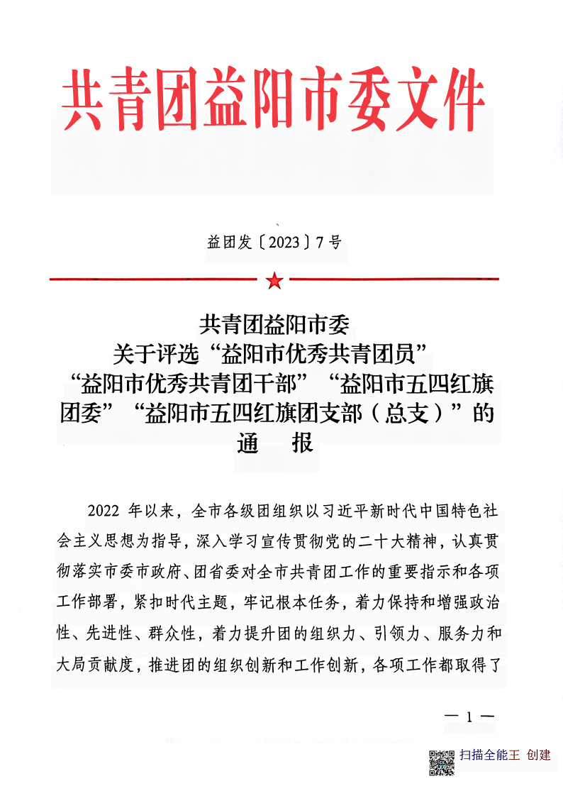 喜报!我校荣获“益阳市五四红旗团委”荣誉称号 近日,共青团益阳市委印发《共青团益阳市委关于评选“益阳市优秀共青团员”“益阳市优秀共青团干部”“益阳市五四红旗团委”“益阳市五四红旗团支部(总支)”的通报》,我校荣获“益阳市五四红旗团委”荣誉称号。 学校团委表示,将以此次表彰为契机,不忘初心,牢记使命,紧紧围绕培养社会主义现代化建设者和接班人的使命任务,团结带领全校各级团组织和团员青年,抓住机遇、开拓创新、踔厉奋发,助推我校共青团工作再上新的台阶。(撰稿:张颖昳;审核:刘静远 莫蓉) 【打印正文】