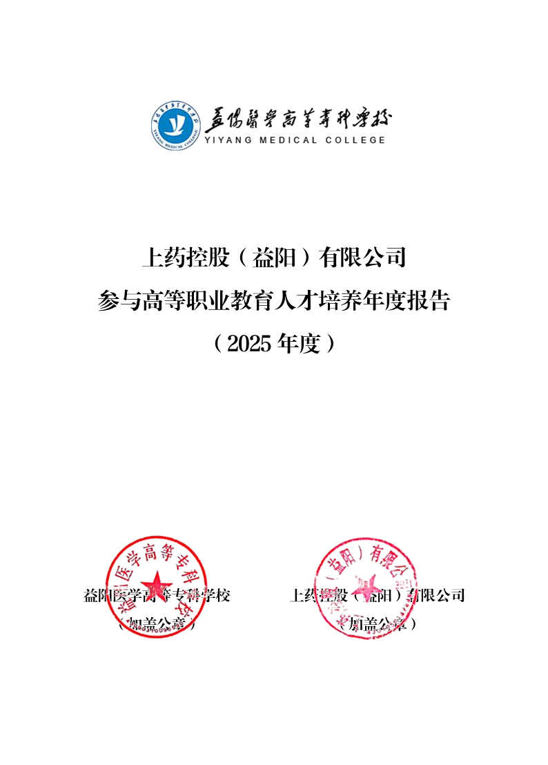 上药控股(益阳)有限公司参与高等职业教育人才培养年度报告(2025年度) 来源: 发布时间:2025-12-22 14:42:23 浏览次数: 次 【字体:小 大】 终审:质量评价中心 分享到: 【打印正文】
