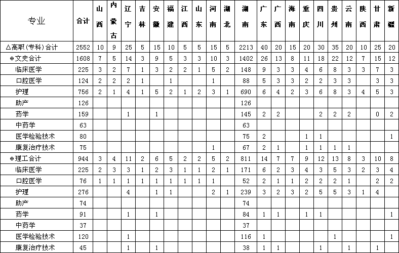 普通大专分省招生计划