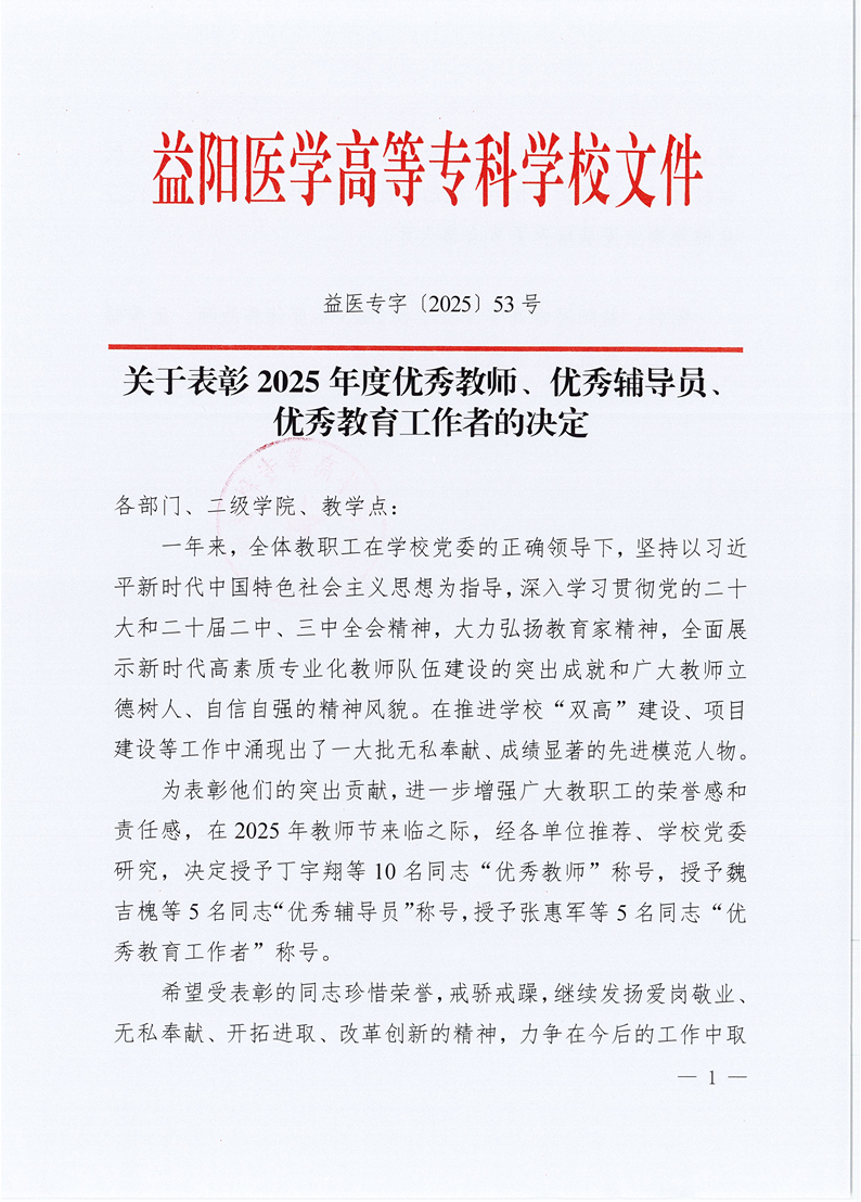 表彰2025年度优秀教师、优秀辅导员、优秀教育工作者的决定